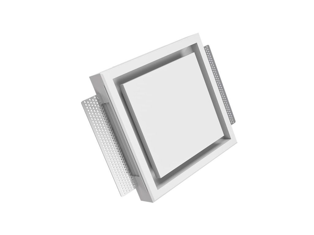 - Anemostat je osadený v úplnej rovine so stropom alebo stenou, tvorí celok so štruktúrou hliníkových rámov a inštalovaných sadrokartónových dosiek, čo eliminuje možnosť prasklín v budúcnosti .