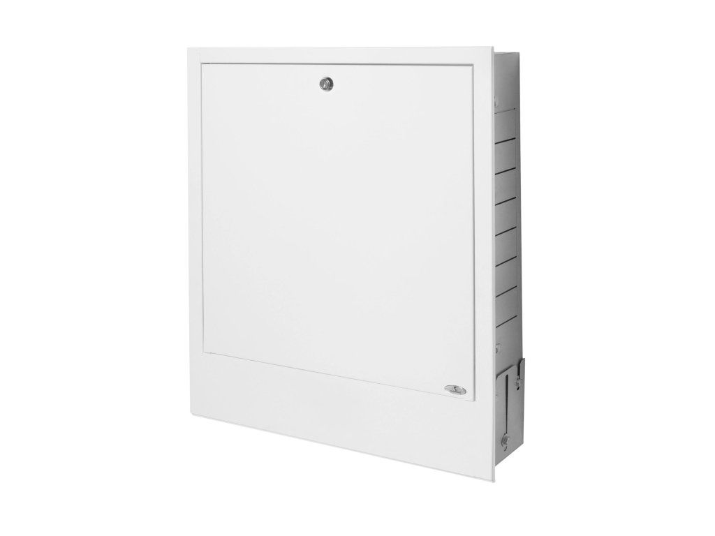 Podomietková skrinka pre rozdeľovač predstavuje elegantné riešenie pre skrytú inštaláciu rozdeľovača priamo do steny, vďaka čomu dokonale lícuje s povrchom omietky a nenarúša vzhľad interiéru.