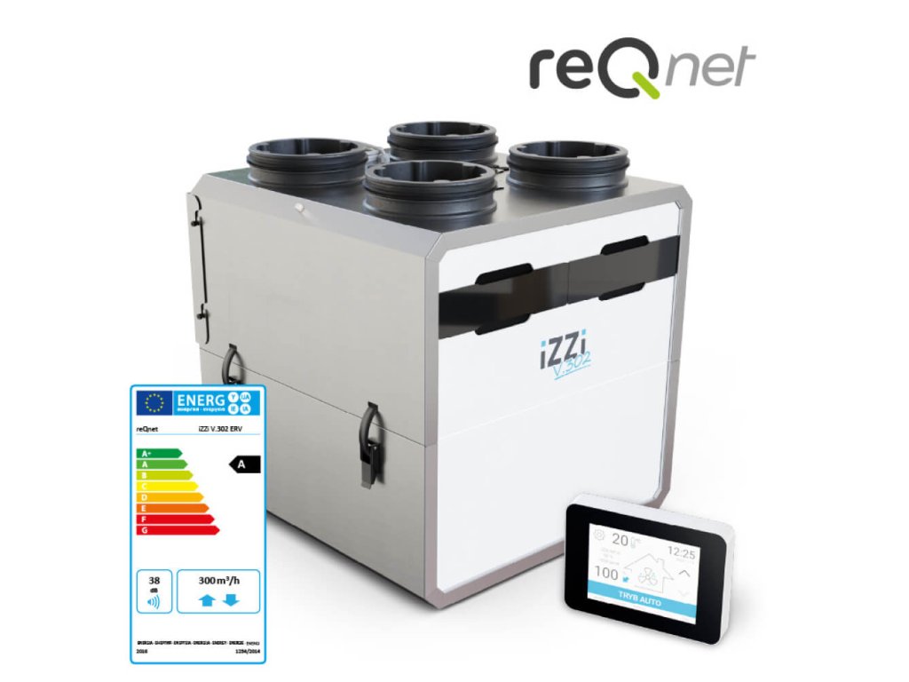 izzi V.302 ERV STANDARD je inovatívny, kompaktný rekuperátor s modulárnym dizajnom. Je vybavený entalpickým výmenníkom tepla vyrobeným z polymérovej membrány, vďaka čomu zároveň rekuperuje vlhkosť. Jedinečný kryt bez odvádzania kondenzátu umožňuje samostatnú inštaláciu jednotky. izzi V.302 ERV má už v štandarde energeticky úsporné EC ventilátory, rozsiahlu automatizáciu a 100% bypass. Sada obsahuje aj dotykový ovládací panel.