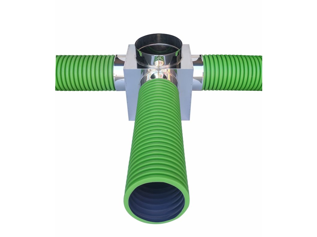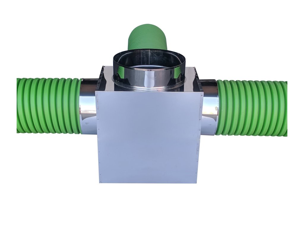 🟢 Výmenník tepla zem-voda sa používa v moderných mechanických vetracích systémoch s rekuperáciou tepla, kde je nevyhnutná efektívna výmena tepla so zemou.