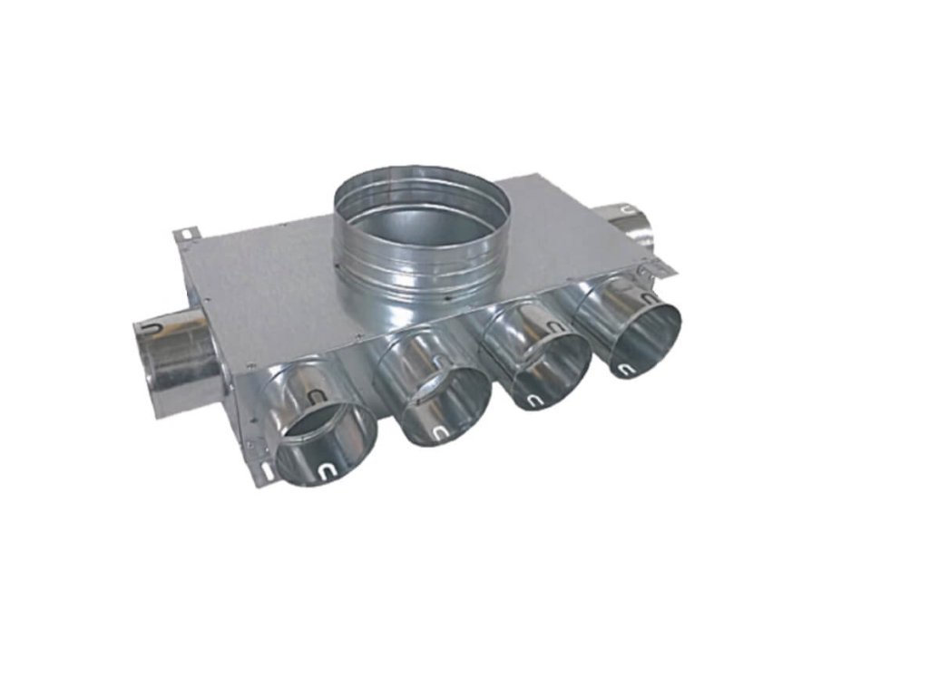 Rozdeľovací box vyrobený z pozinkovaného plechu pre PE FLEX potrubia.