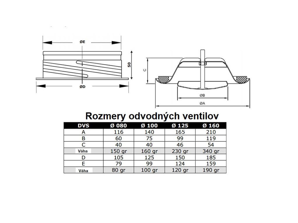 Tanierový ventil 125mm biely Odsávanie