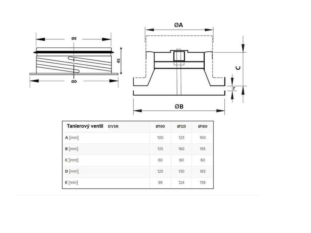 Tanierový ventil DEC DVSR 125mm biely Prisávanie